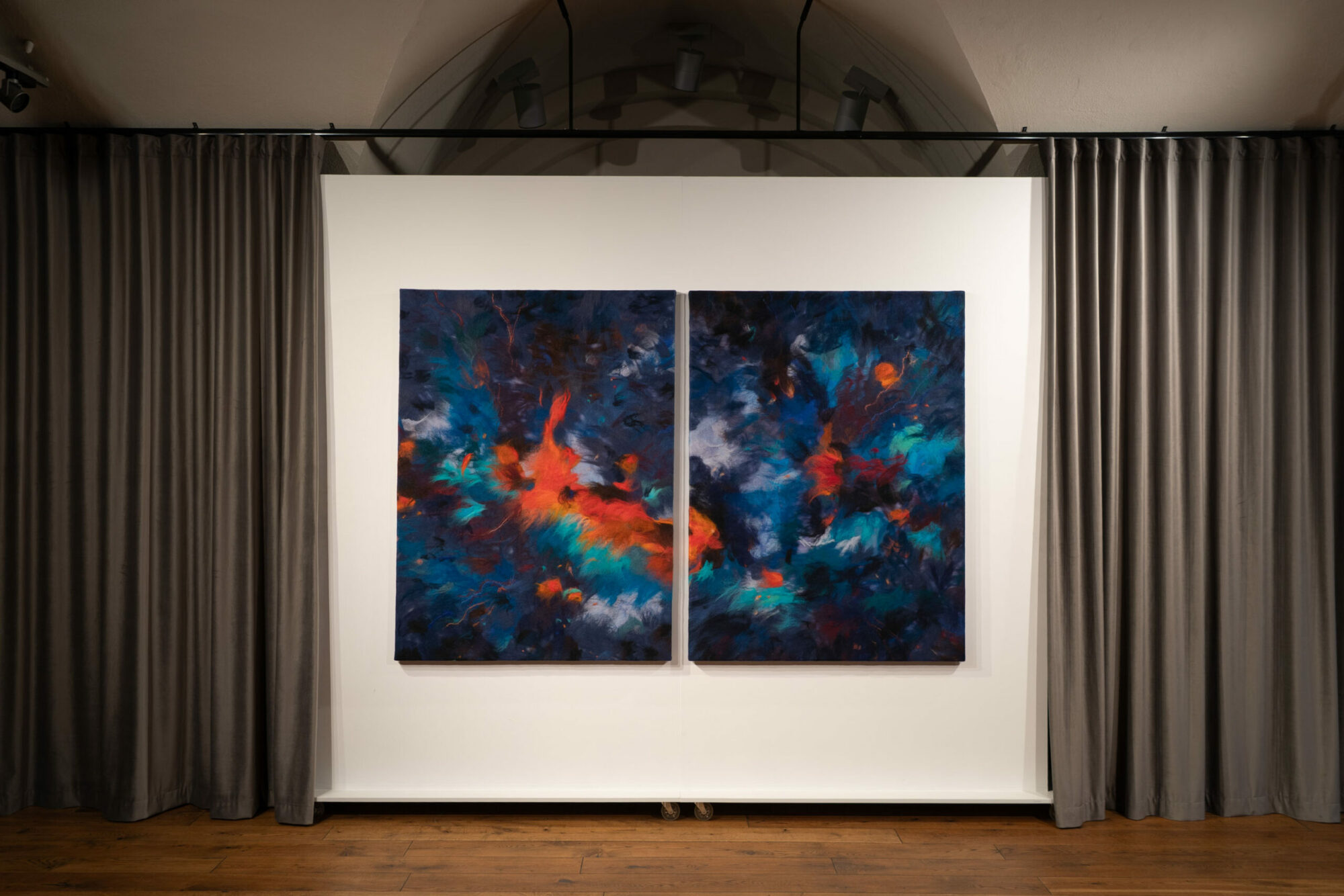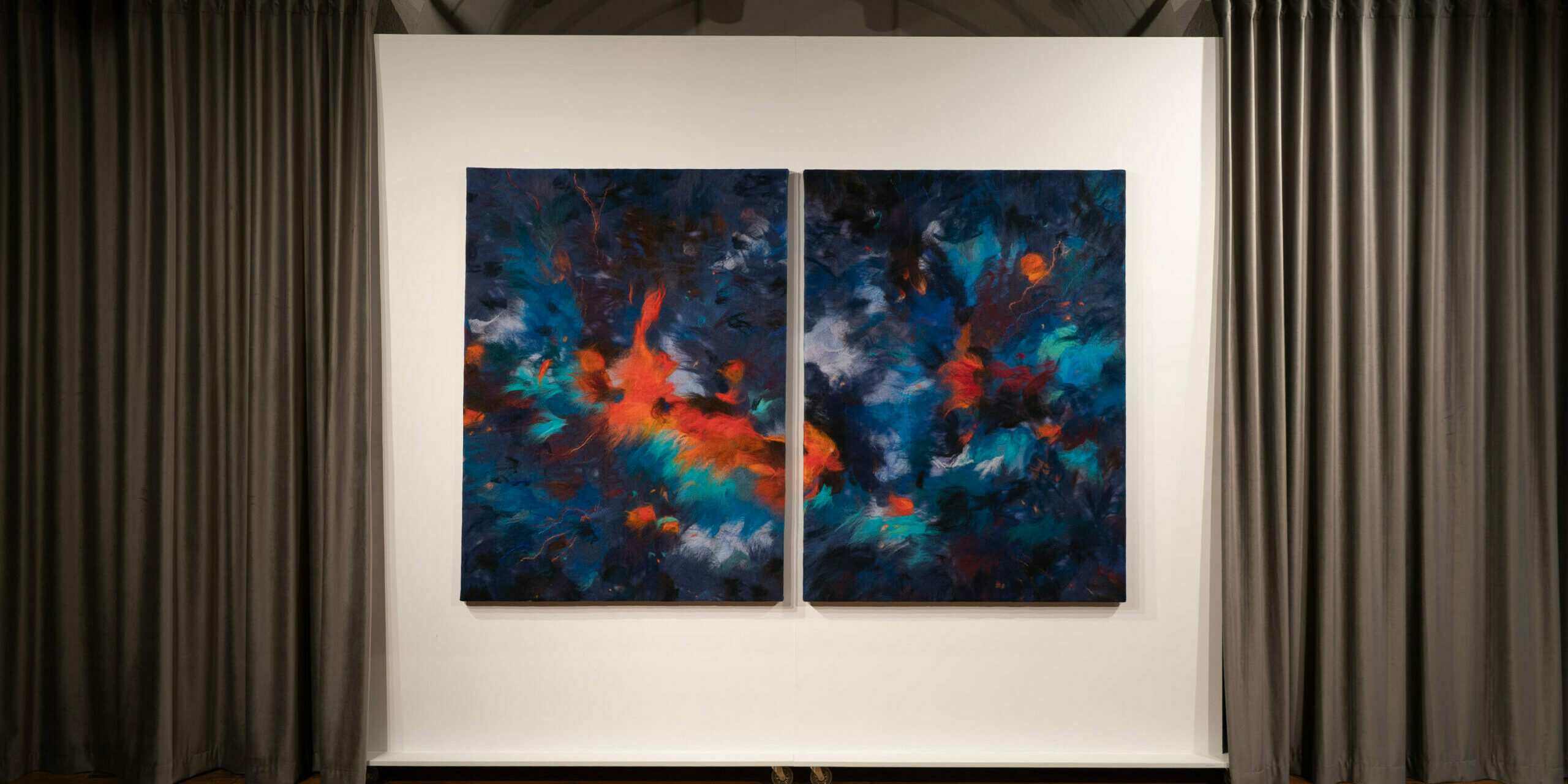 Des oeuvres textiles puissantes, faites main. Un jeu subtil entre soie et laine naturelles.